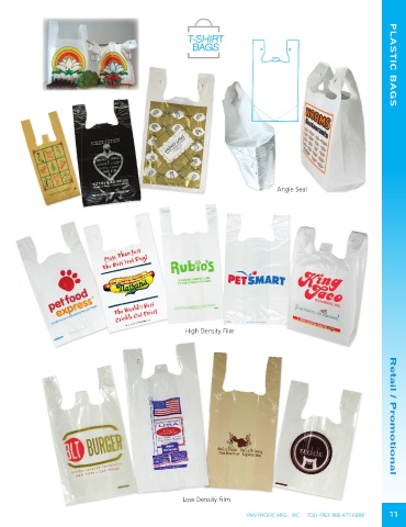 T-SHIRT-SHIRT T BAGSGS PLASTIC BAGS BA Angle Sealeale Seeal High Density Film Low Density Film Retail / Promotional PAN PACIFIC MFG., INC. TOLL FREE 888.475.6888 11