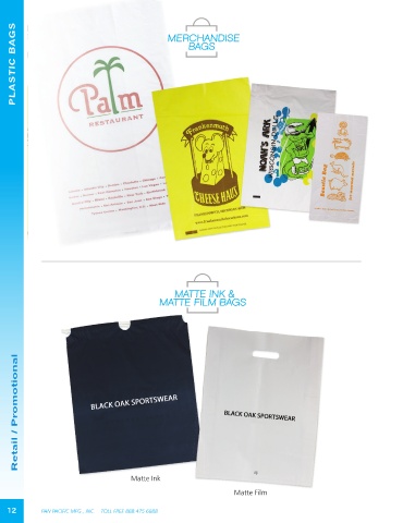 PLASTIC BAGS MERCHANDISE MERCHANDISE BAGSGS BA MATTE INK & TTE INK & MA MA MATTE FILM BAGSTTE FILM BAGS Retail / Promotional Matte Ink Matte Film 12 PAN PACIFIC MFG., INC. TOLL FREE 888.475.6888