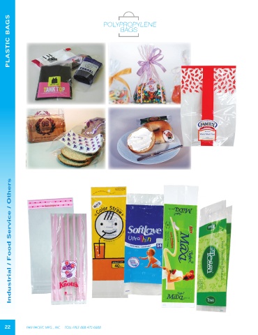 PLASTIC BAGS PLASTIC BAGS PLASTIC BAGS POL BA POLYPROPYLENE YPROPYLENE BAGSGS 22 Industrial / Food Service / Others PAN PACIFIC MFG., INC. TOLL FREE 888.475.6888