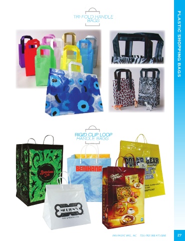 TRI-F TRI-FOLD HANDLEOLD HANDLE BA PLASTIC BAGS BAGSGS PLASTIC BAGS PLASTIC SHOPPING BAGS RIGID CLIP LOOP HANDLE HANDLE BAGS BAGS 2 PAN PACIFIC MFG., INC. TOLL FREE 888.475.6888 277