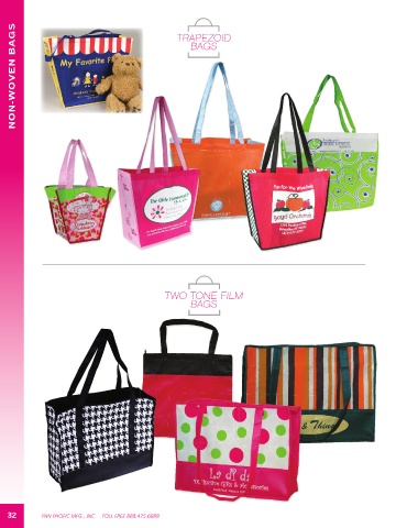 NON-WOVEN BAGS PLASTIC BAGS PLASTIC BAGS TRAPEZ TRAPEZOIDOID BAGSGS BA TWO TONE FILMWO TONE FILM T BAGSGS BA 32 PAN PACIFIC MFG., INC. TOLL FREE 888.475.6888