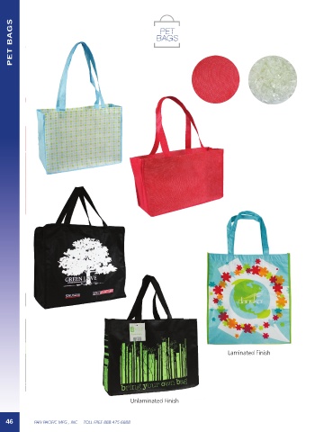 PET BAGS PLASTIC BAGS PLASTIC BAGS BAGSGS PETT PE BA Laminated Finish Unlaminated Finish 46 PAN PACIFIC MFG., INC. TOLL FREE 888.475.6888