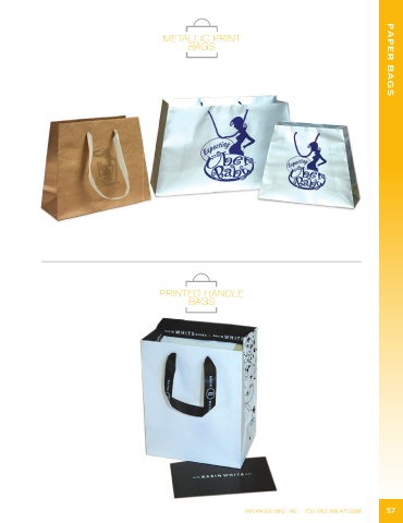 METALLIC PRINTTALLIC PRINT ME BA BAGSGS PAPER BAGS PLASTIC BAGS PLASTIC BAGS PRINTE PRINTED HANDLE D HANDLE BA BAGSGS 57 PAN PACIFIC MFG., INC. TOLL FREE 888.475.6888 57