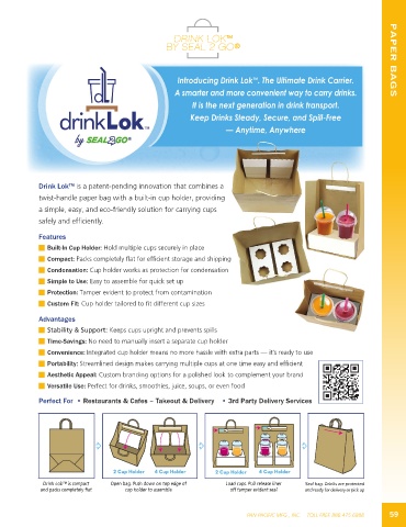twist-handle paper bag with a built-in cup holder, providing
