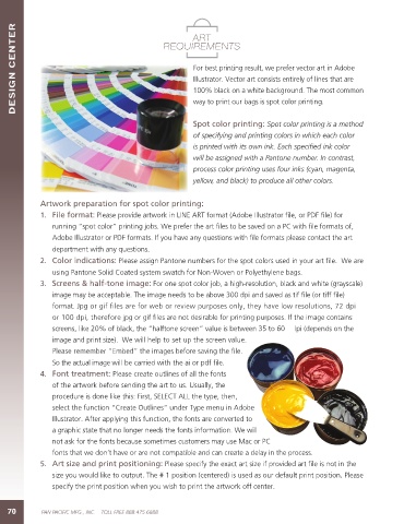 2. Color indications: Please assign Pantone numbers for the spot colors used in your art file. We are