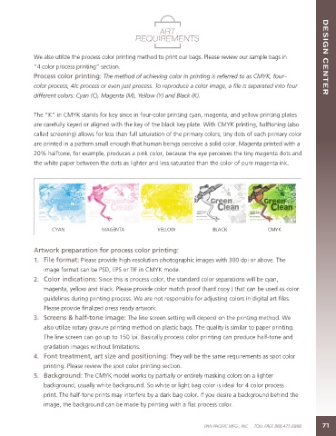 2. Color indications: Since this is process color, the standard color separations will be cyan,